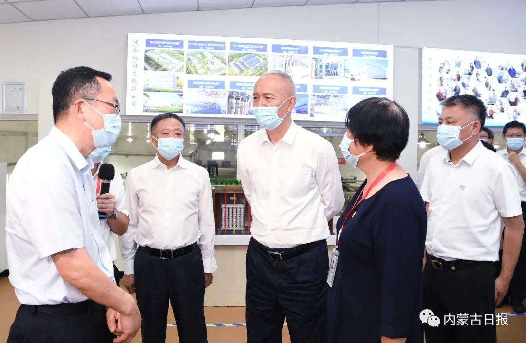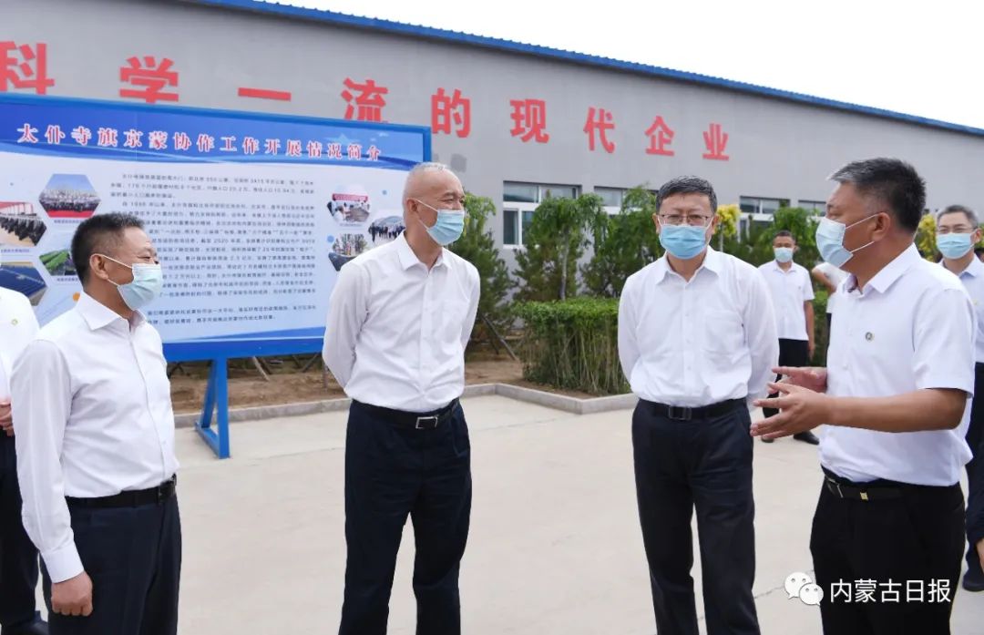 7月22日,北京市黨政代表團(tuán)在錫林郭勒盟太仆寺旗考察調(diào)研。圖為北京市黨政代表團(tuán)在內(nèi)蒙古科泰隆達(dá)環(huán)??萍加邢薰究疾煺{(diào)研。