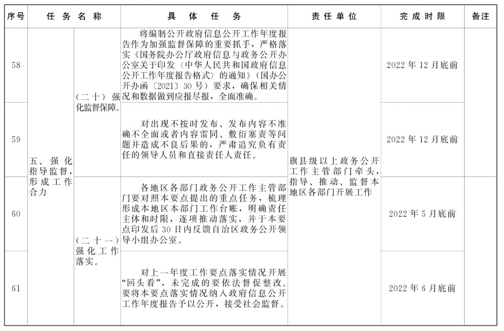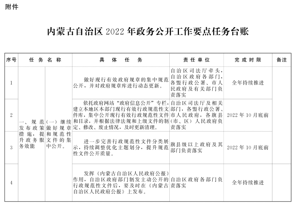附件:內(nèi)蒙古自治區(qū)2022年政務(wù)公開工作要點(diǎn)任務(wù)臺(tái)賬