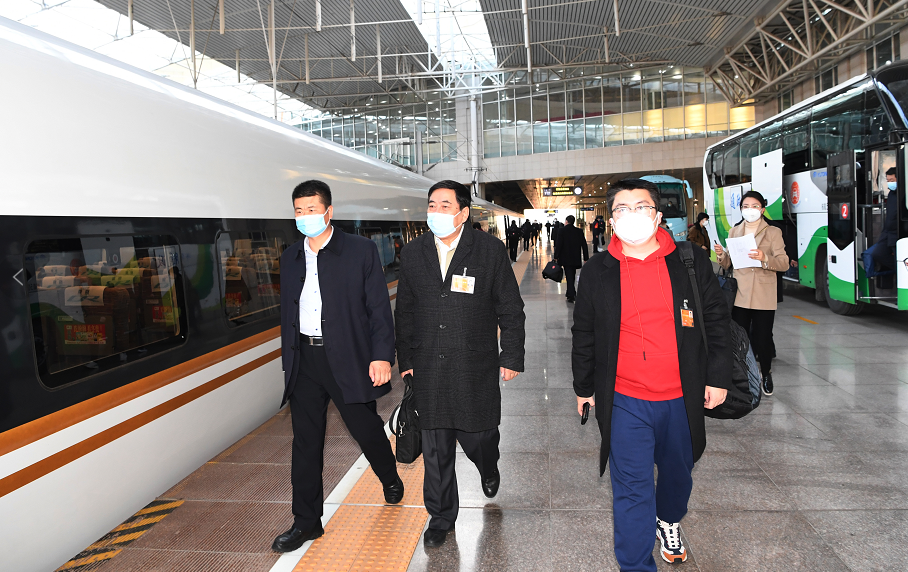 3月3日上午,出席十三屆全國人大五次會議的內(nèi)蒙古代表團(tuán)從呼和浩特乘高鐵赴京。
