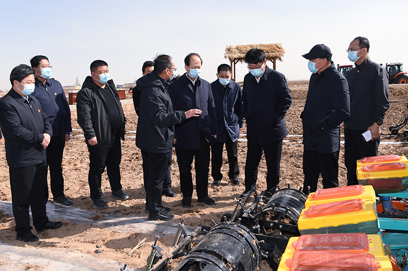 3月16日,自治區(qū)黨委書記、人大常委會主任石泰峰來到巴彥淖爾市杭錦后旗二道橋鎮(zhèn),察看生產(chǎn)播種情況。