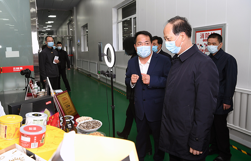 3月15日,自治區(qū)黨委書記、人大常委會主任石泰峰來到巴彥淖爾市三胖蛋食品有限公司,了解生產(chǎn)加工和網(wǎng)上平臺銷售情況。